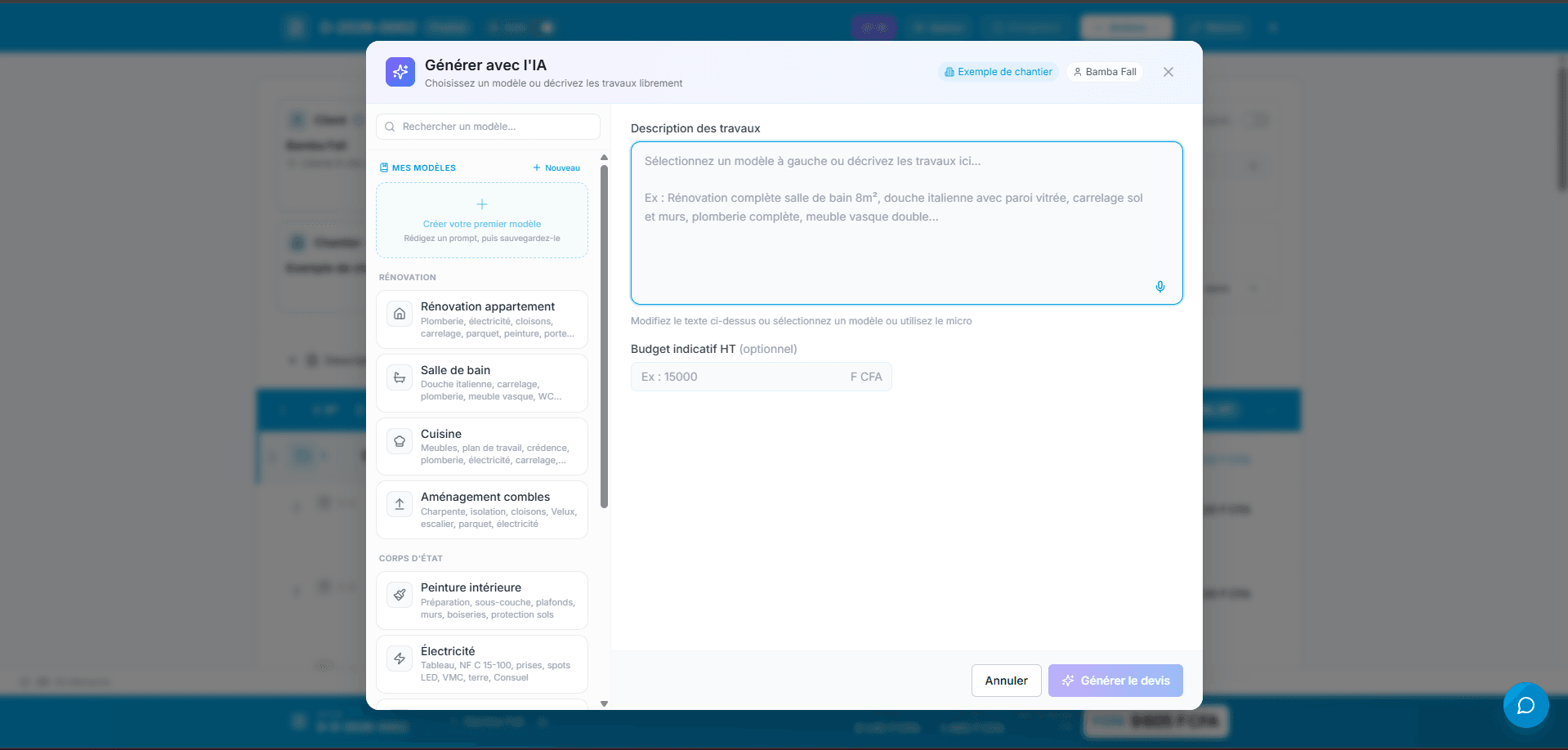OBUILD montre maintenant tout le parcours métier, de la génération IA du devis à la facturation finale, avec des vues chantier et pilotage plus solides.