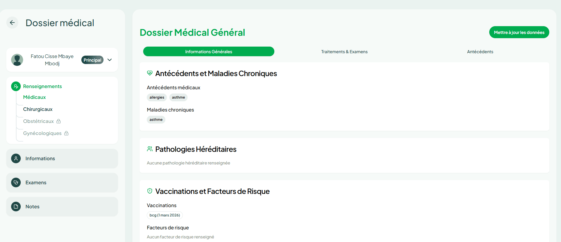 Les vues proviennent d'un usage réel et montrent la continuité entre consultation, dossier patient, documents PDF, lettres de garantie et suivi administratif de la prise en charge.